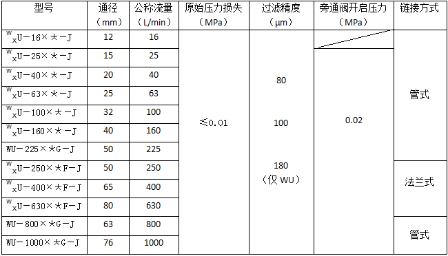 则过滤器型号为:WUI·BH—100×*—J XUI·BH—100×*—J