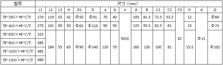 图2:TF-250~1300法兰式连接尺寸: