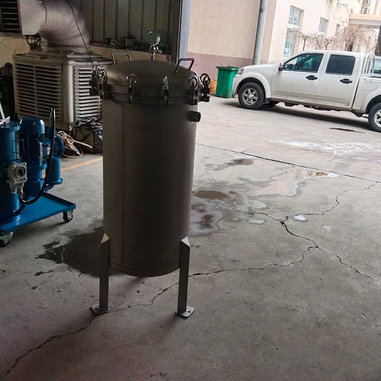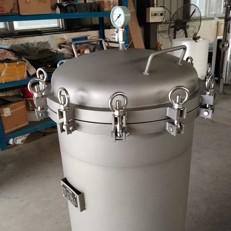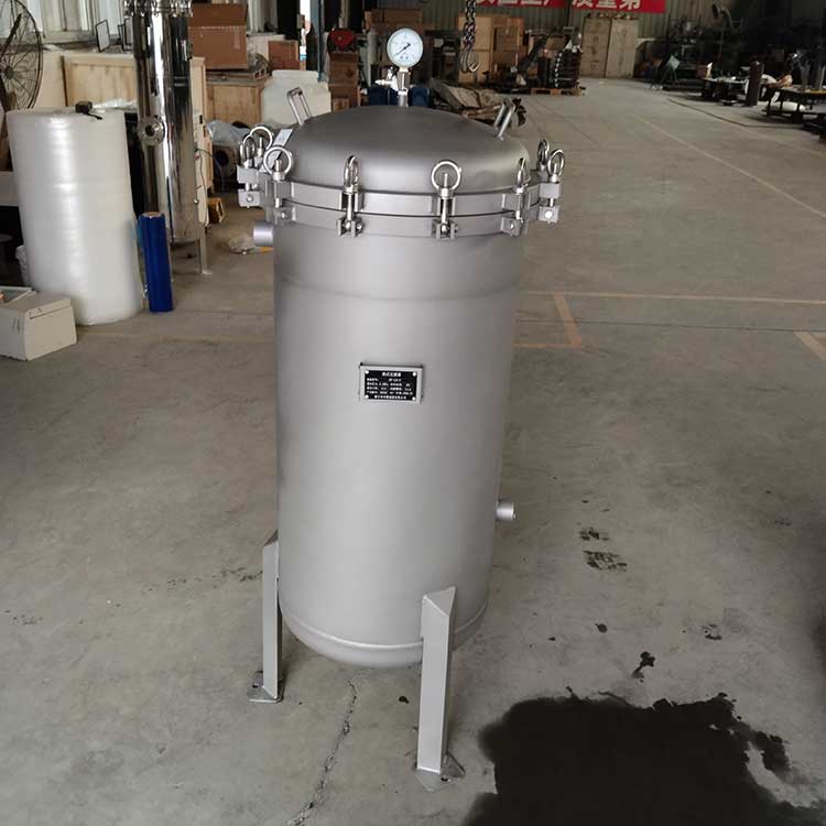 袋式过滤器是一种压力式过滤装置,主要有过滤筒体、过滤筒盖和快开机构、滤袋、加强网等主要部件组成,滤液由过滤机外壳的旁侧入口管流入滤袋,滤袋本身是装置在加强网篮内,液体渗透过所需要细度等级的滤袋即能获得合格的滤液,杂质颗粒被滤袋拦截该机更换滤袋十分方便,过滤基本无物料消耗。袋式过滤器具备构造合理、密封性好、流通才能强、操作简便等诸多长处。尤其是滤袋侧漏机率小,能正确地保障过滤精度,并能快捷地改换滤袋,使得操作成本下降。滤器内外表面采取机械喷砂抛光解决,平均、易清洗。我们知道,袋式过滤器所采取的过滤方法是侧进侧出的方法,也可以采取侧进底出的方法,通过管道中的压力将过滤液体介质压入或抽入袋式过滤器桶体,要过滤的液体介质经由电抛光冲孔支持滤蓝承托的过滤袋的过滤,发生变化的固液分别到达液体介质被过滤的结果。